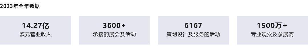 展会主办(EXHIBITIONS)——策划、主办各类展览,打造B2B和B2C领域的行业盛会, 2023年共组织105场自主品牌展览。